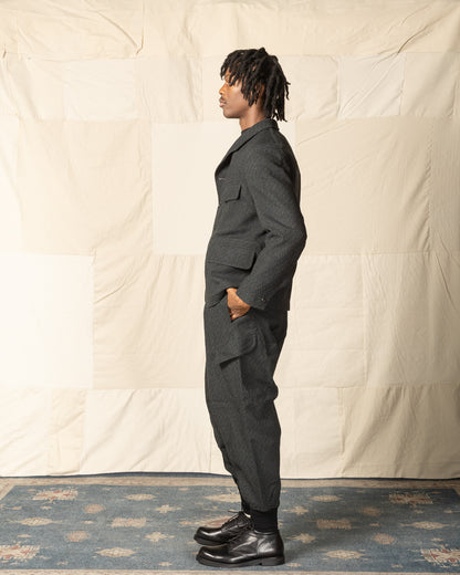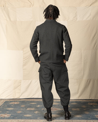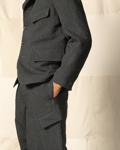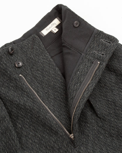 Inspired by workwear fabrics from 1920s France and produced by Lovat Mills in Scotland, the Sporting Tweed is a 100% wool performance herringbone fabric, with a unique subtle texture & an excellent hand. It's woven from twisted yarns, made by spinning a worsted (long staple) yarn around a woolen (short staple) one. It does everything a good wool should - it's comfortable and resistant to abrasion, with moisture-wicking properties, great insulation, and a handsome drape.