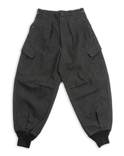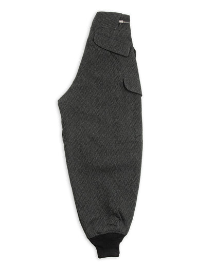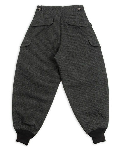 These are cut with a very high rise and fitted waist (that can be adjusted with elasticated zip sliders at the sides), a roomy top block, full thighs & knees, and a handsome taper down to a knit cuff. Highly secure at the top and bottom, these pants trap heat in, while the relaxed fit through the top and knee give plenty of room to breathe, and don't restrict movement at all.