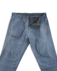 The waistband is its own piece, and contains a selvedge-ID drawstring that can be used to adjust the fit on the fly. The real stars are the pockets, of which there are only two - both zipper pockets feature locking zips that can be affixed into partially open or closed positions for maximum security. These pockets are deep and spacious, more than enough for whatever you were fitting into 5 pockets on your jeans. Meanwhile, the fly zips up with a normal zipper, and then buttons closed with a custom patinated button and toggle closure.
