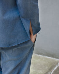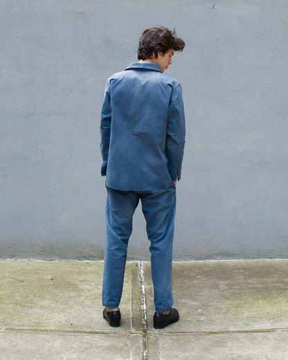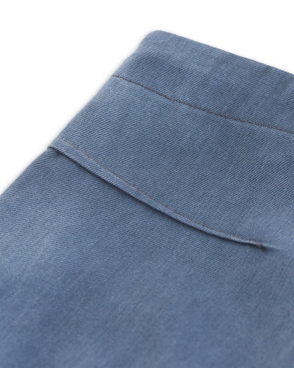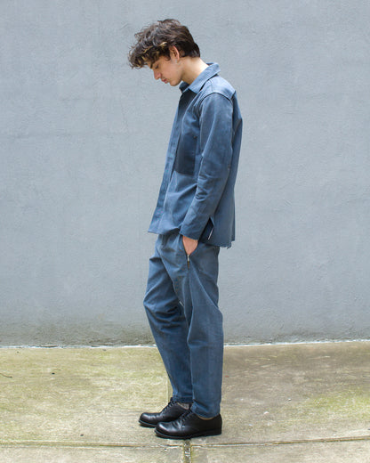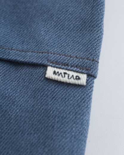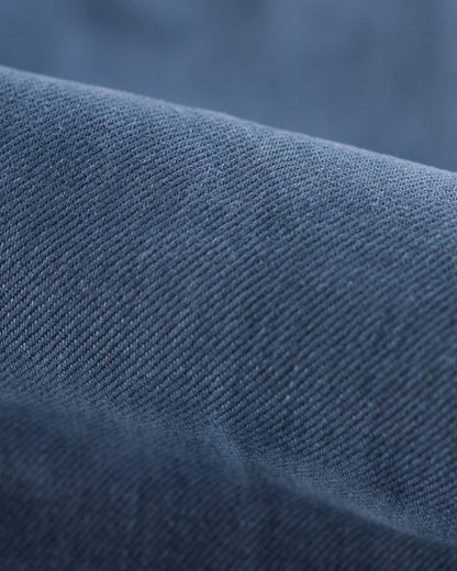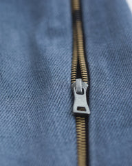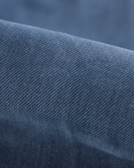 The Palmetto Bluey fabric is an extremely comfortable 12oz Italian selvedge denim fabric that has been given a custom weathering/fading treatment, and brushed for additional softness. The color comes from a combination of a mineral gray/blue warp and a sulfur black weft that will continue to develop these "dusty" low-contrast fades over time.