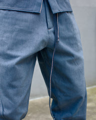 The Somonte Pant is a not an easy pant and not a pair of jeans, but a secret third thing. It's cut with a relaxed top block, featuring full thighs and a comfortable medium-high rise, with legs that taper fairly aggressively down to a slim leg opening. They're assembled in a single-panel construction, with a single seam on each leg, shaping darts in the front and back, no yoke, and a cleanly finished interior just brimming with little peeks of selvedge.