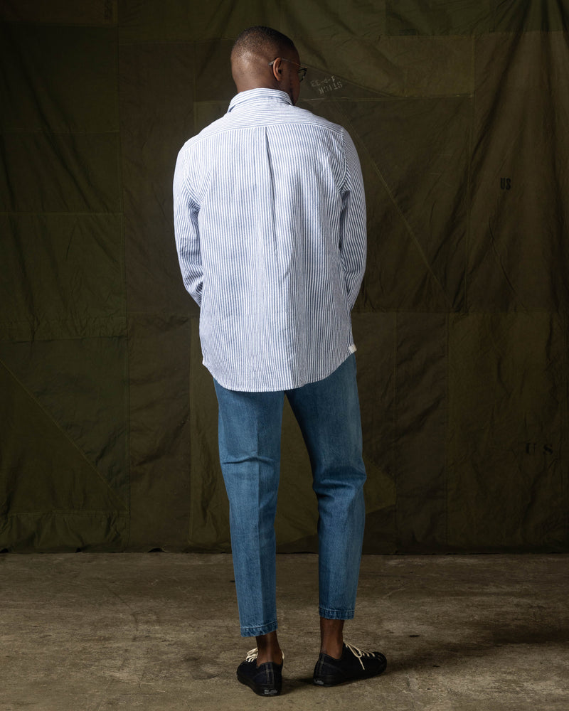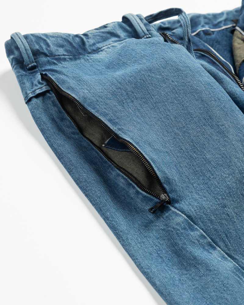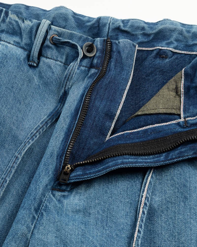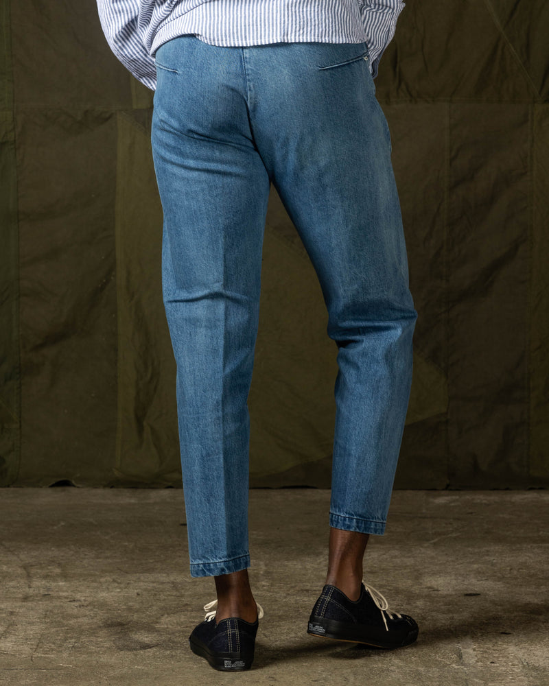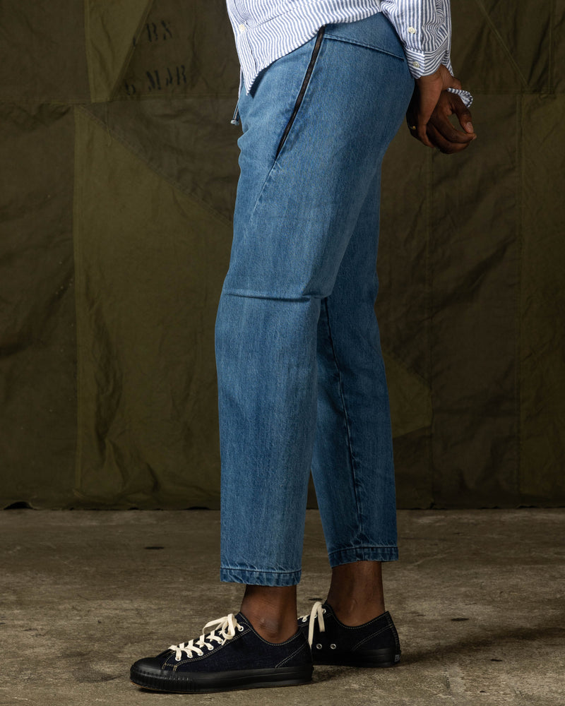 Made from MATiAS's Lectro Peach Denim, a lightweight cotton selvedge with an extremely handsome custom mid wash that highlights the indigo "railroading" around the various seams. Immediately soft and comfortable, it will only continue to break in over time, fading further and relaxing into the shape of the wearer's body.