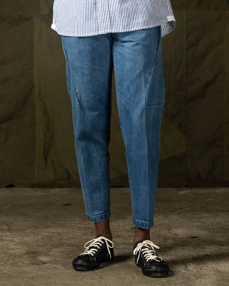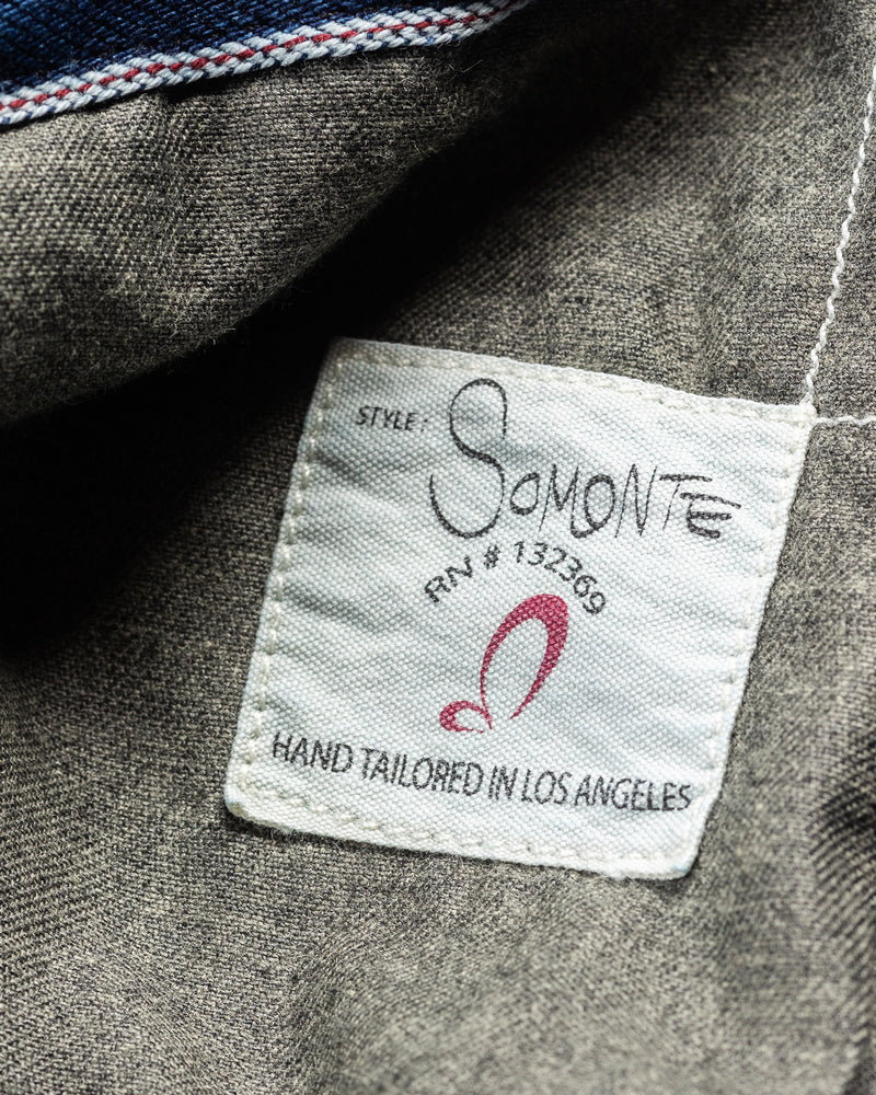 The Somonte Pant is a not an easy pant and not a pair of jeans, but a secret third thing. It's cut with a relaxed top block, featuring full thighs and a comfortable medium-high rise, with legs that taper fairly aggressively down to a slim leg opening. They're assembled in a single-panel construction, with a single seam on each leg, shaping darts in the front and back, no yoke, and a cleanly finished interior just brimming with little peeks of selvedge.