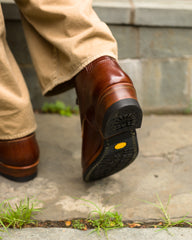 Additionally, this remarkable leather features a glossy finish and a gorgeous grain texture that ranges from subtle to incredibly prominent. Unlike cowhide, horsebutt tends to roll rather than crease over time, giving them a more subtle and graceful aging process. Over time, the footbed will collapse, taking the shape of your sole, as the horsehide upper breaks in and conforms to the rest of your foot.