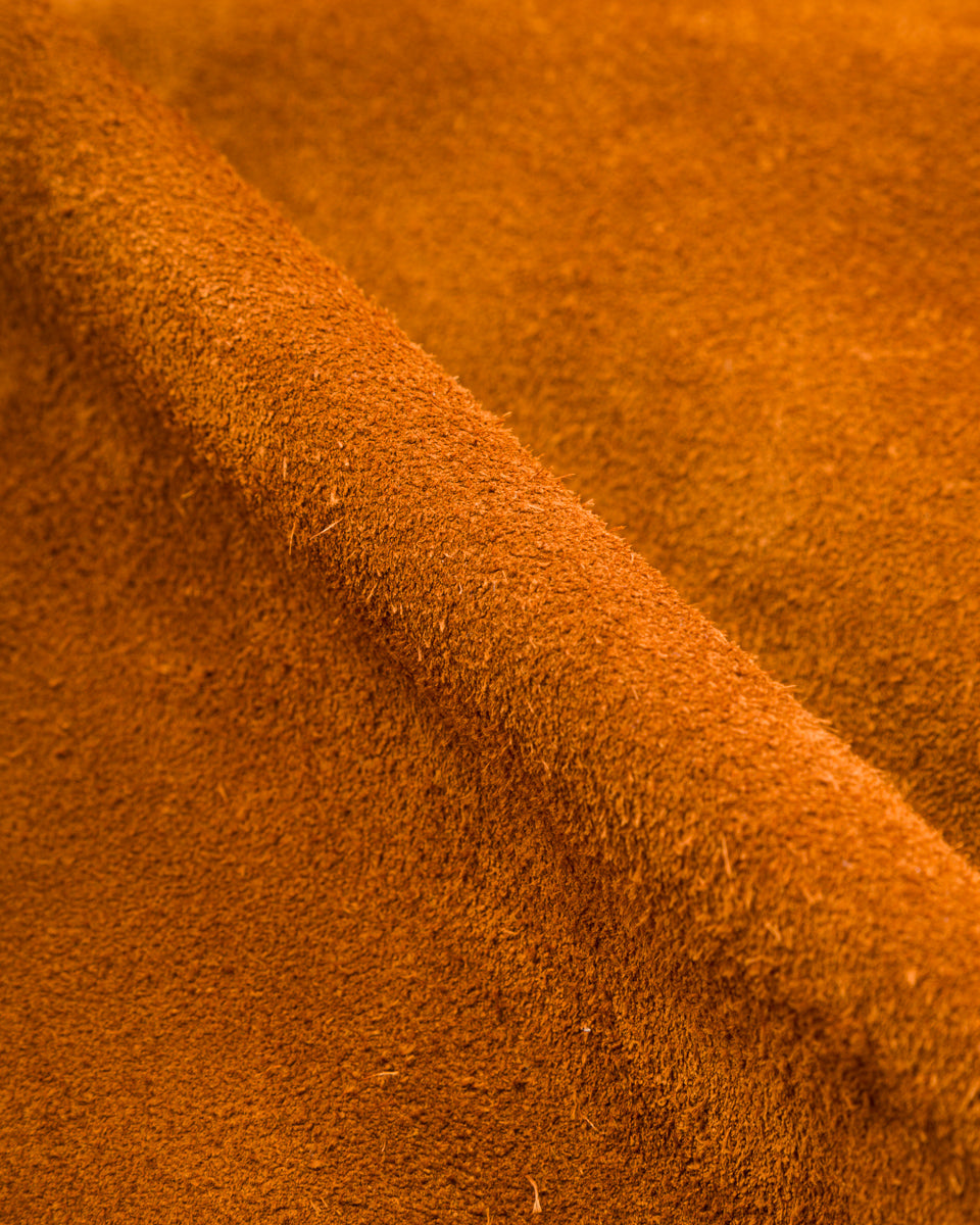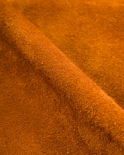 The leather is a 1.3mm full grain steerhide roughout suede (that's a mouthful) - this is the reverse side of Y'2's oiled steerhide. Ultra soft and supple, this leather requires virtually no break-in whatsoever. It's dyed a rich camel brown, with a ton of tonal depth - this leather absolutely pops in just about any lighting, but it looks especially incredible in sunlight.