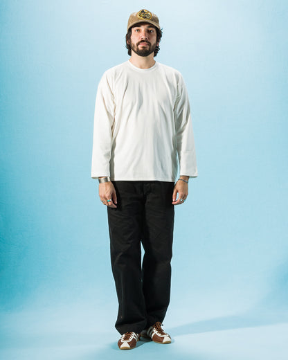 These lightweight base layers are the ultimate in elevated crewnecks. Featuring a plain stitch knit, they're made from 100% suvin cotton, the longest staple cotton currently available, with even more inherent softness and durability than even supima cotton. The organic cotton used for these shirts is grown in Southern India before being shipped to Japan for milling into fabric.