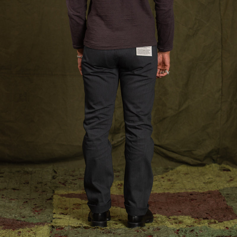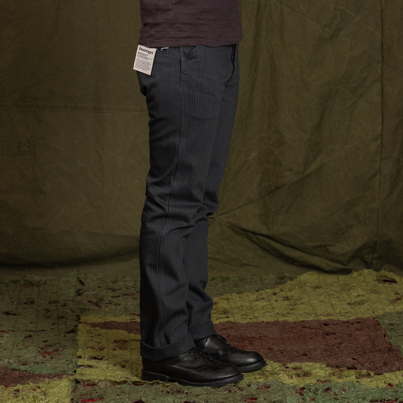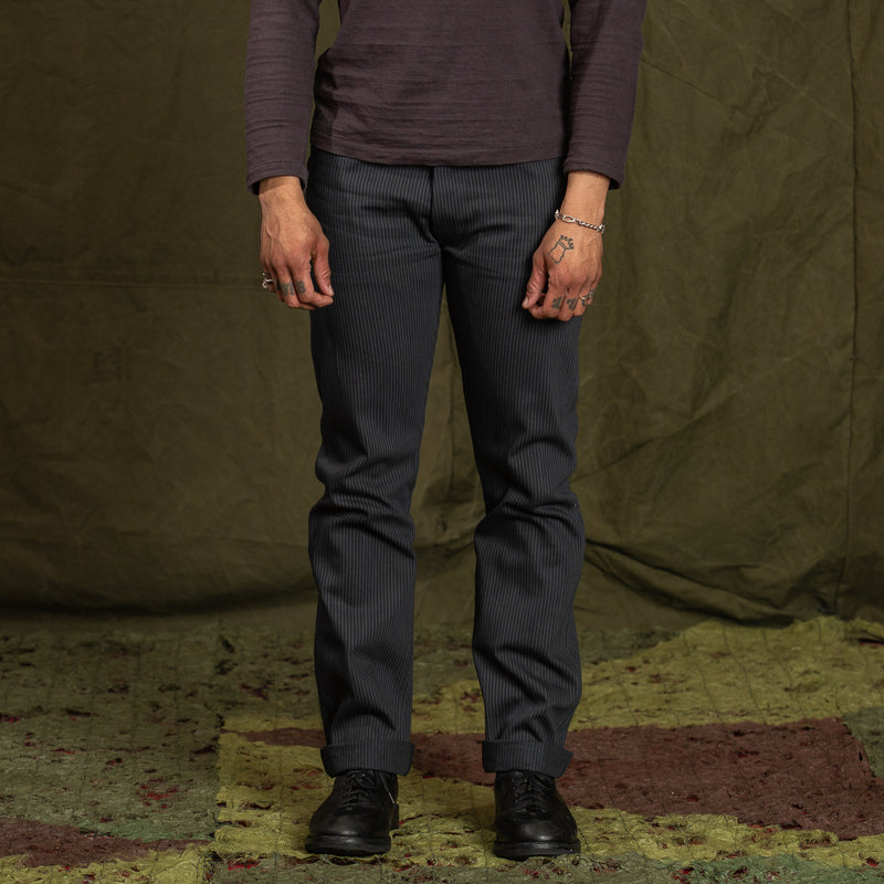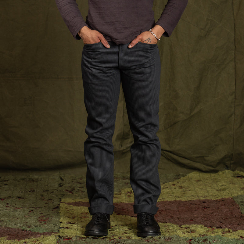 - Custom 12oz hickory stripe fabric from Nihon Menpu in Japan