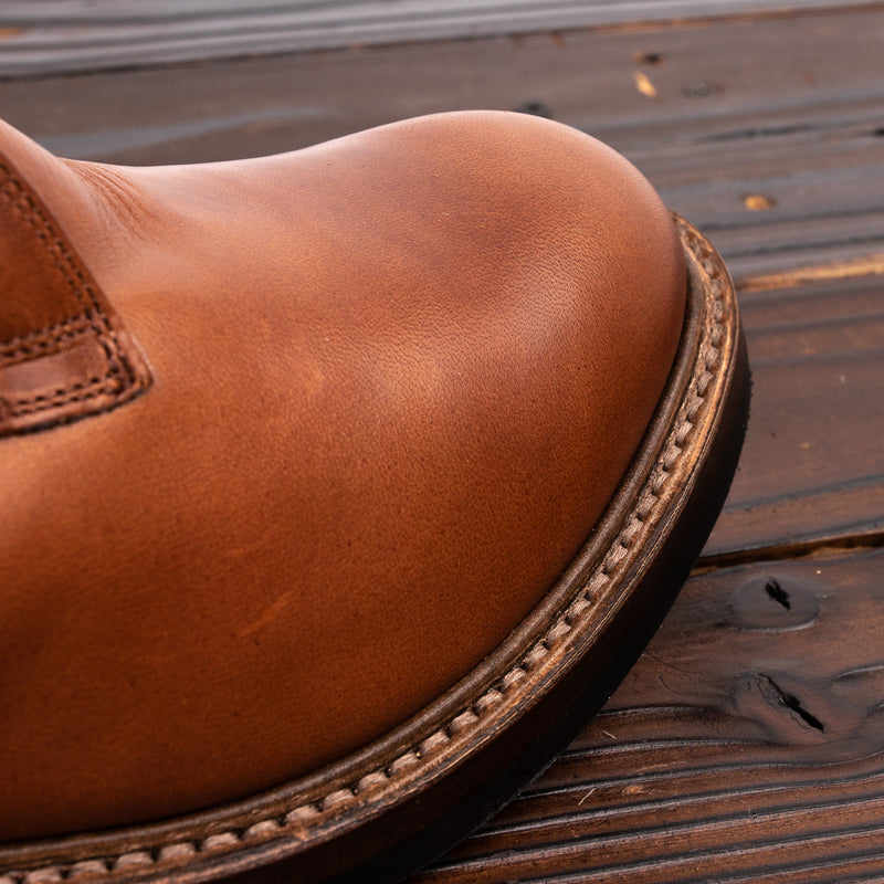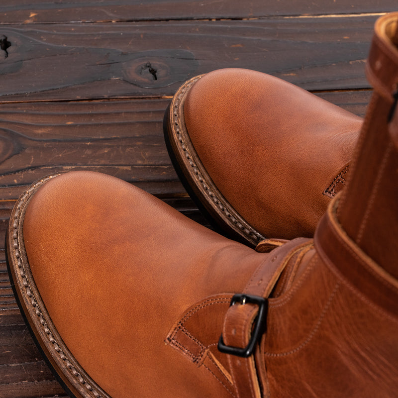 Please note - some boots may have significant differences in grain tension on the shaft, resulting in a "wrinkly" areas. This is an intentional choice by Gary Eastman to make the boots look more period correct. As the boots age, areas with lower grain tension on the shaft will pops out and will give them a really nice vintage character. The durability of these areas is not affected, it is merely an aesthetic choice.