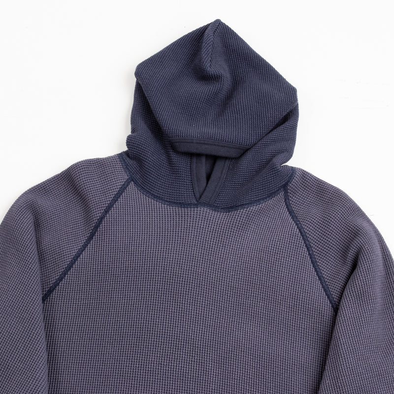 The Two-Tone thermal sweatshirt is your best friend for morning jogs and evening errands. Knit with a sturdy waffle outer face, the inner face is smooth and extremely soft, giving multiple layers of insulation. This double face knit also gives an excellent heft and drape to the sweatshirt, with raglan sleeves providing additional comfort and ease of movement.