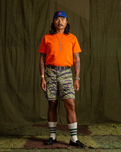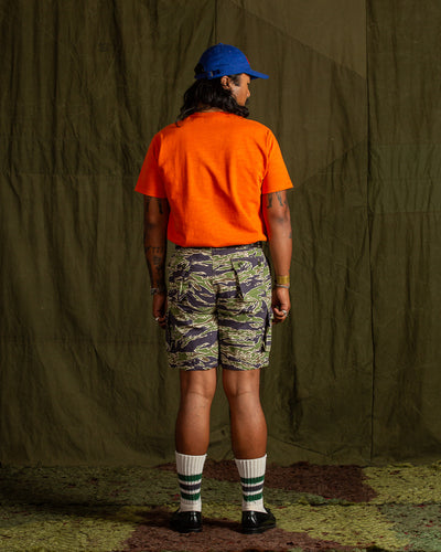 Tiger camouflage was developed during the 1950s by the US Military for use in jungle combat, being adopted at various points of the Vietnam war across all branches of the US armed forces. Following the conclusion of the Vietnam war, the pattern was retired and the military moved on to newer camouflages - while Tiger camo continues to enjoy a long and storied sartorial history within civilian markets.