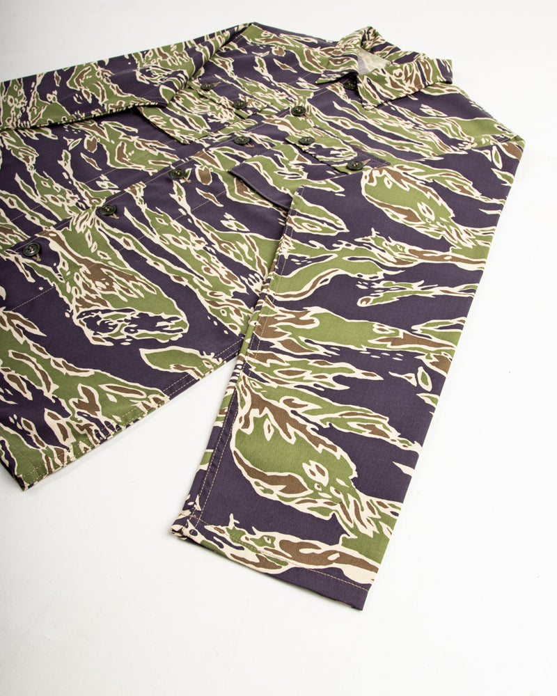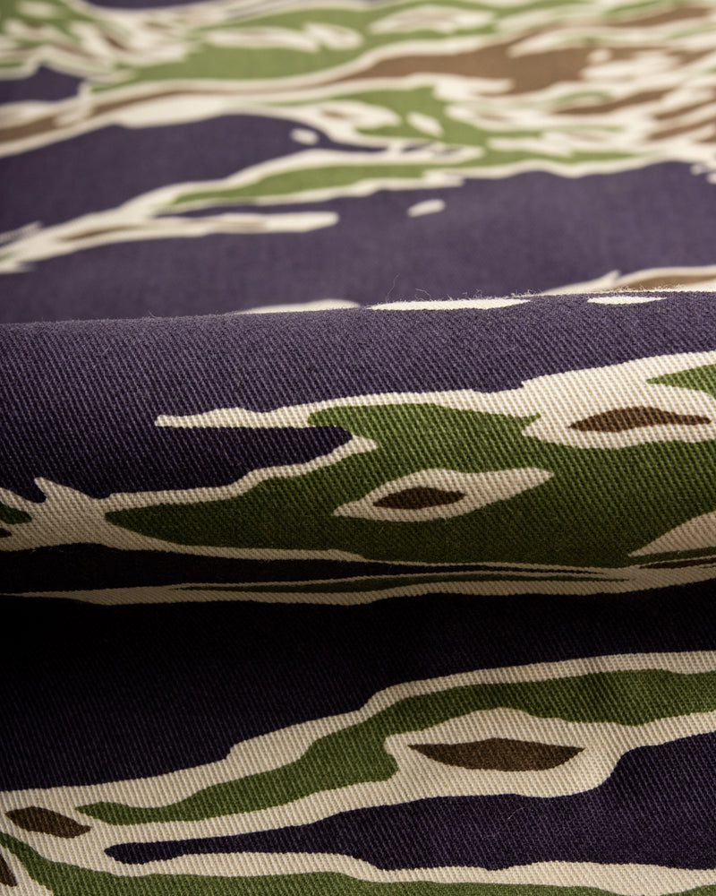 Tiger camouflage was developed during the 1950s by the US Military for use in jungle combat, being adopted at various points of the Vietnam war across all branches of the US armed forces. Following the conclusion of the Vietnam war, the pattern was retired and the military moved on to newer camouflages - while Tiger camo continues to enjoy a long and storied sartorial history within civilian markets.
