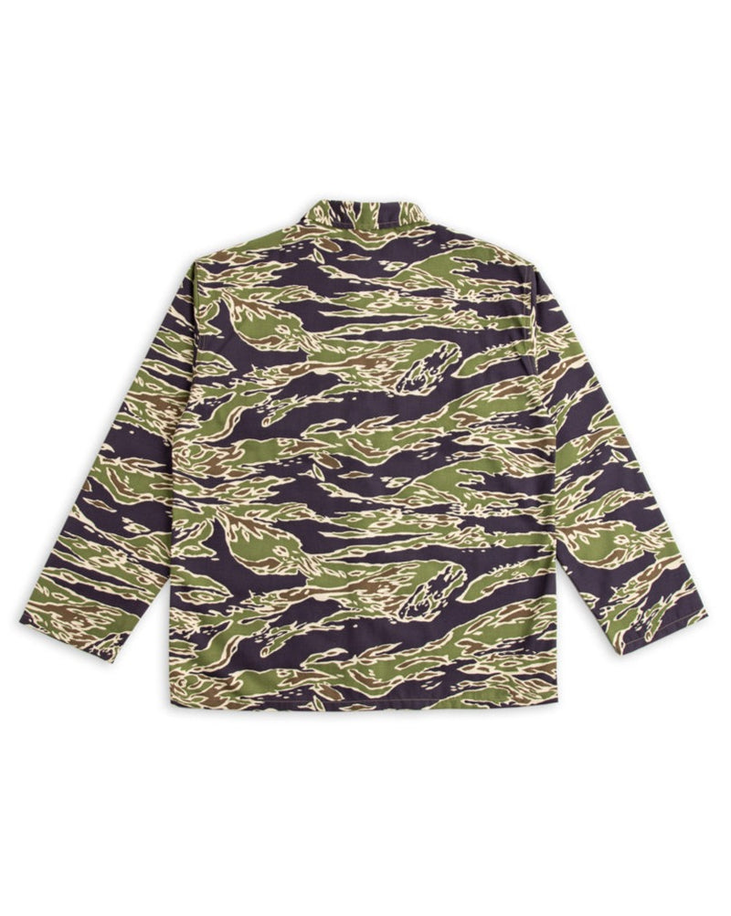 The Tiger Camo shirt is a simple fatigue top, cut with an accommodatingly boxy fit and complete with tonal urea buttons and two flap chest pockets. It's just relaxed enough to function as either outerwear or a base layer, and having been originally designed for jungle environments, wears well during hotter weather.