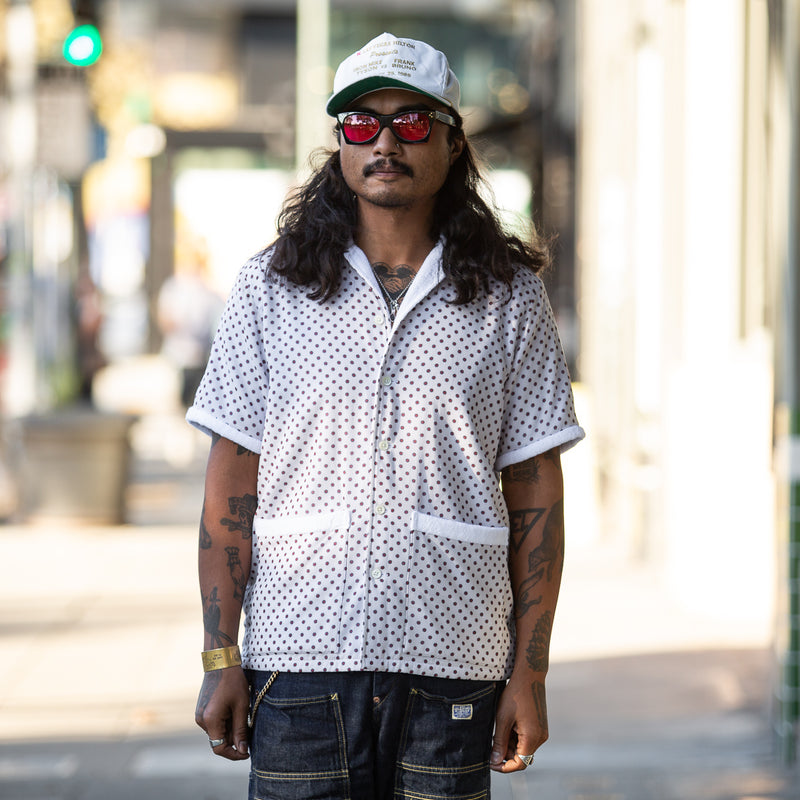 The Towel Shirt is the gold standard of leisurewear, elevated beyond the heights of the aloha shirt, it's the perfect thing for a hot day near a body of water (almost any body of water). Cut with a boxy, relaxed fit, short sleeves, a camp collar, and two hand pockets, it's got everything you need to stay and look cool as hell.