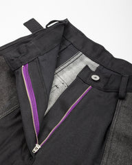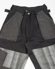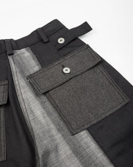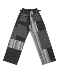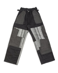 Completed with a clean interior construction and fully finished seams, these are built to last, utilizing double stitched felled seams throughout. The patchwork is comprised of several different 100% upcycled cotton fabrics in a tonal black/charcoal/gray combination, these are new-old-stock, and made from off-cuts and scraps that would otherwise be thrown out. Instead, these perfectly new and exceptionally high quality fabrics are fully utilized, creating a pair of pants that are (in our opinion) both artistically valuable and functionally superior.
