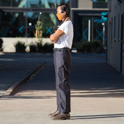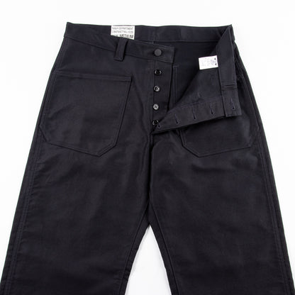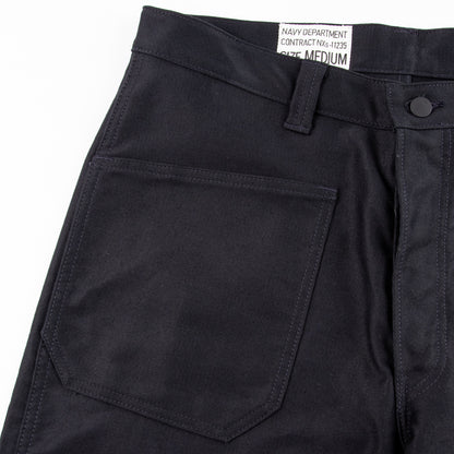 These are exceptionally cool trousers by virtue of being a reproduction of a serviceman customized item. The U.S. Navy issued N-1 Deck Overalls as part of their cold weather program, but never trousers. The Real McCoy's happened to have a pair of the overalls cut into trousers in their collection, and used those as the basis for these.
