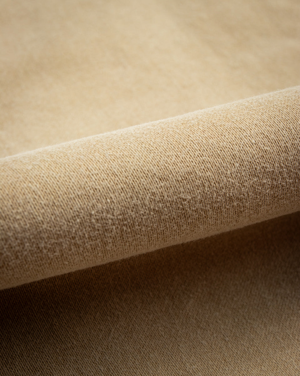 Made from a heavyweight (11oz) cotton sateen, these have been thoroughly stonewashed, softening them considerably and adding tonal variance at the seams. This fabric is tough but forgiving, breaking in quickly with wear and holding its shape and size no matter how many times you wear it.