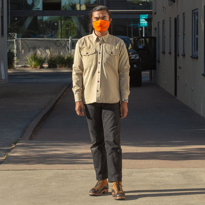 Cut with a roomy body, these are a relaxed work shirt with two oversized chest pockets for storage, and custom corozo "belt" buttons holding everything closed. It's got all the usual Freenote details, like 1/8" double needle stitching details, pointed pocket flaps, and custom woven labels.