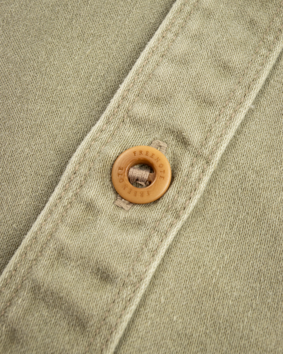 Cut with a roomy body, these are a relaxed work shirt with two oversized chest pockets for storage, and custom corozo "belt" buttons holding everything closed. It's got all the usual Freenote details, like 1/8" double needle stitching details, pointed pocket flaps, and custom woven labels.
