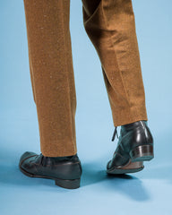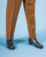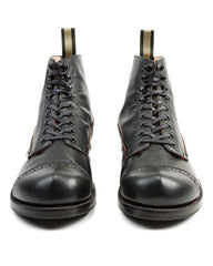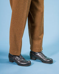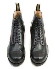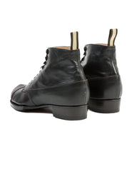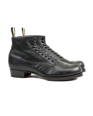 They're made from a lightweight black front-quarter horsehide from Shinki Tannery in Japan. The leather was selected for both its lack of stiffness and its "natural" finish, which includes scars, marks, and blemishes from before tanning. Additionally, this leather creases both easily and dramatically, and was chosen due to this extreme wear pattern in order to better replicate footwear from the early 20th century.