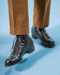The Vaudeville Boots are loosely based on antique performer boots - taking inspiration from traveling vaudeville entertainers, with a tasteful blend of smart details and practical design. They've got a vintage design, borrowing some ideas from French and American workwear circa 1910, with a perforated cap toe, tall back heel, slender profile, and a unique upper paneling configuration.