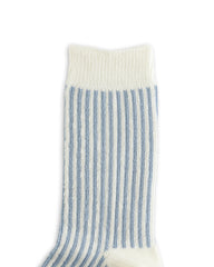 Vertical Stripe Socks - White/Light Blue