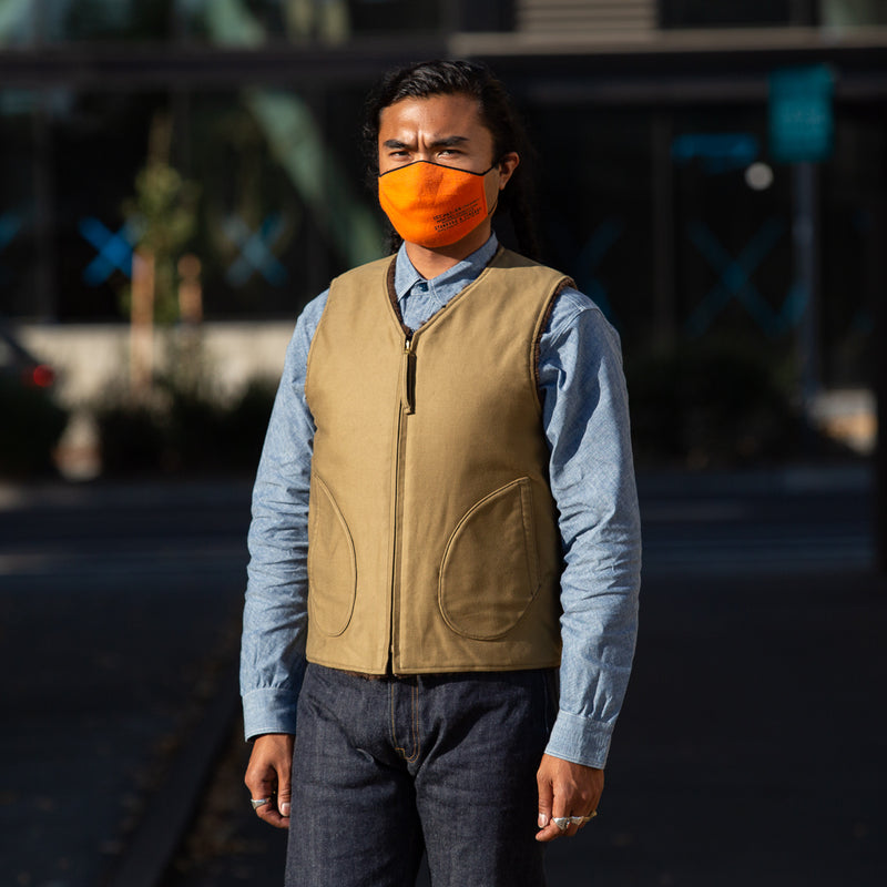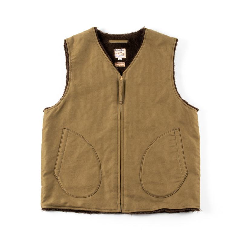 The Real McCoy’s reproduction of this iconic vest features a 100% cotton grosgrain shell with an alpaca lining. The zipper is a period-correct bell-shaped Talon.