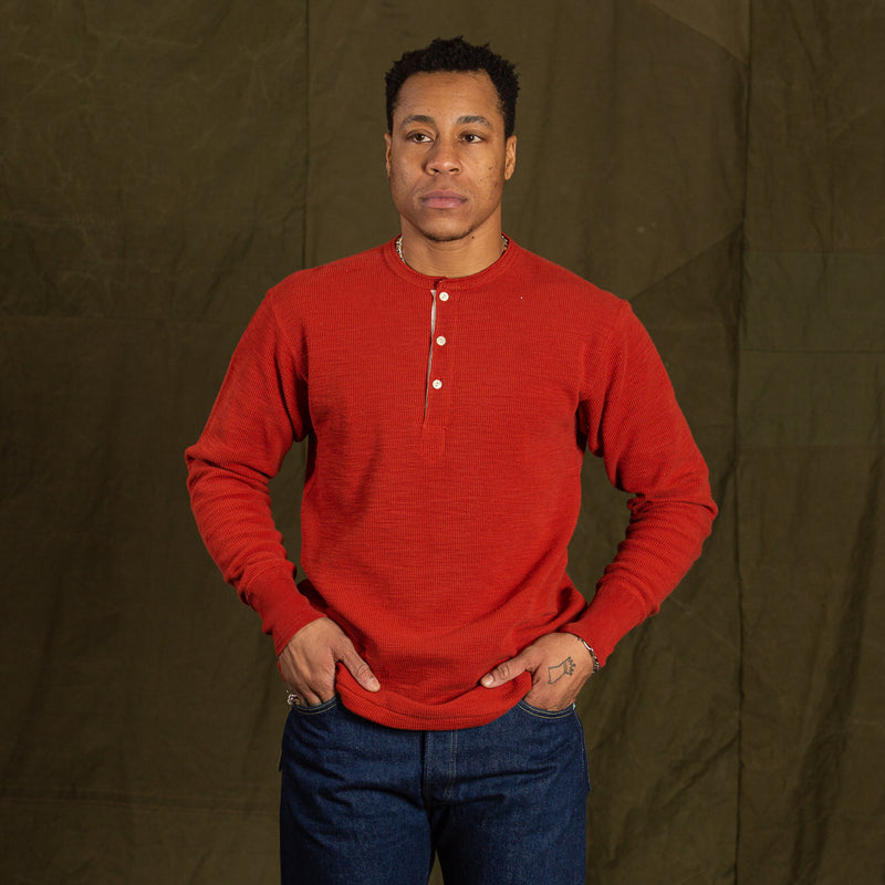 Western Cardigan Stitch Henley Shirt - Brick Red