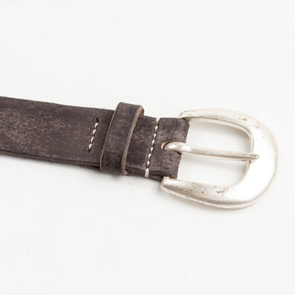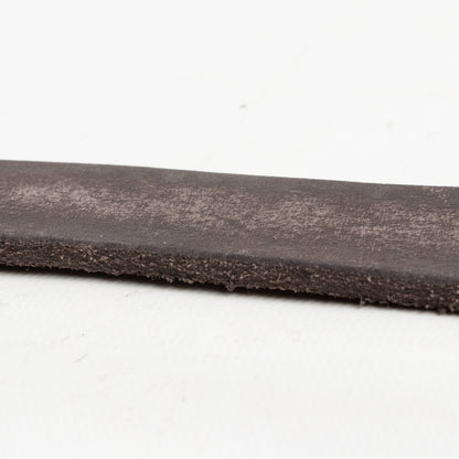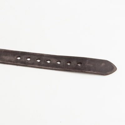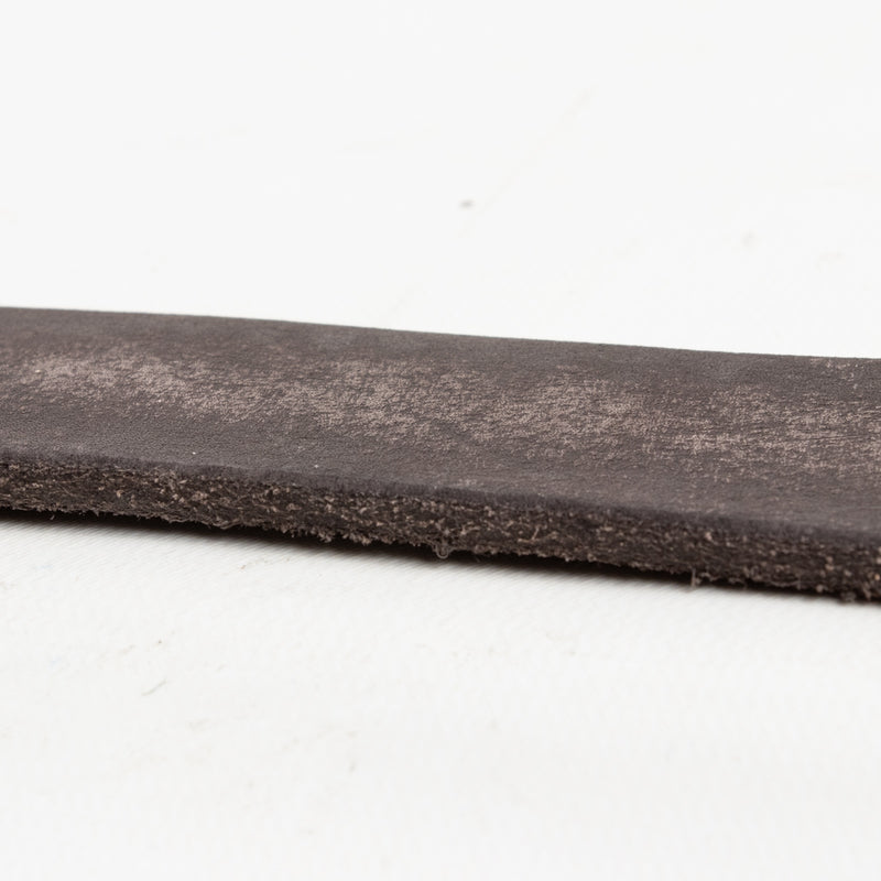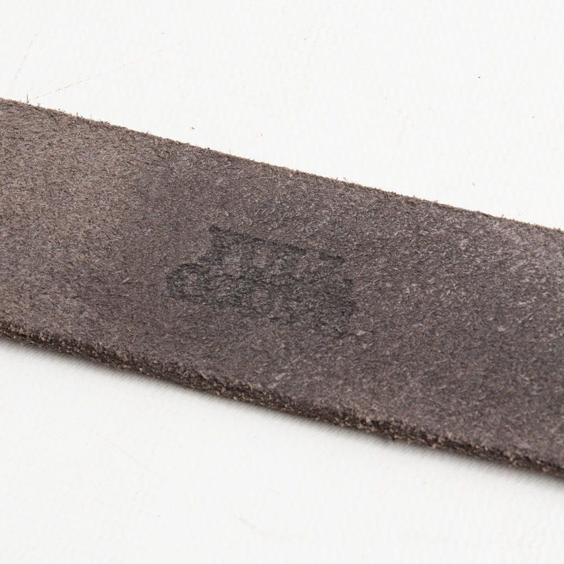 Fullcount's "Wild Leather" belts are no joke - the heavyweight full grain cowhide used to make them is vegetable-tanned, being additionally submerged in organic tanning fluid for a month before being cut into belts.