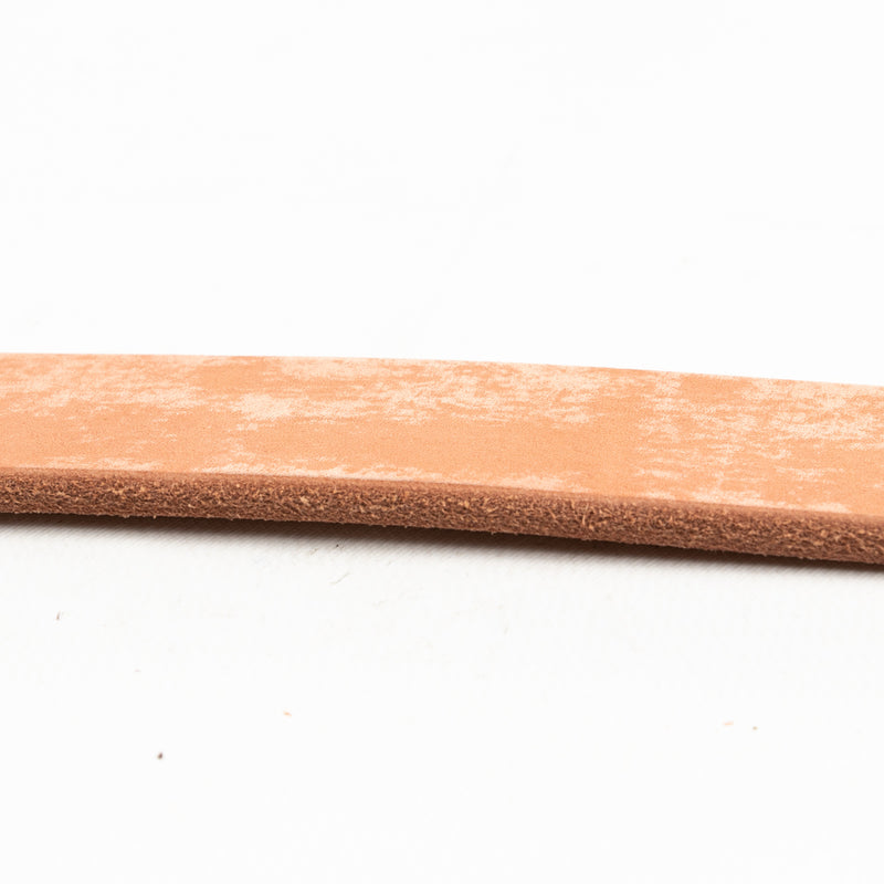 Fullcount's "Wild Leather" belts are no joke - the heavyweight full grain cowhide used to make them is vegetable-tanned, being additionally submerged in organic tanning fluid for a month before being cut into belts.