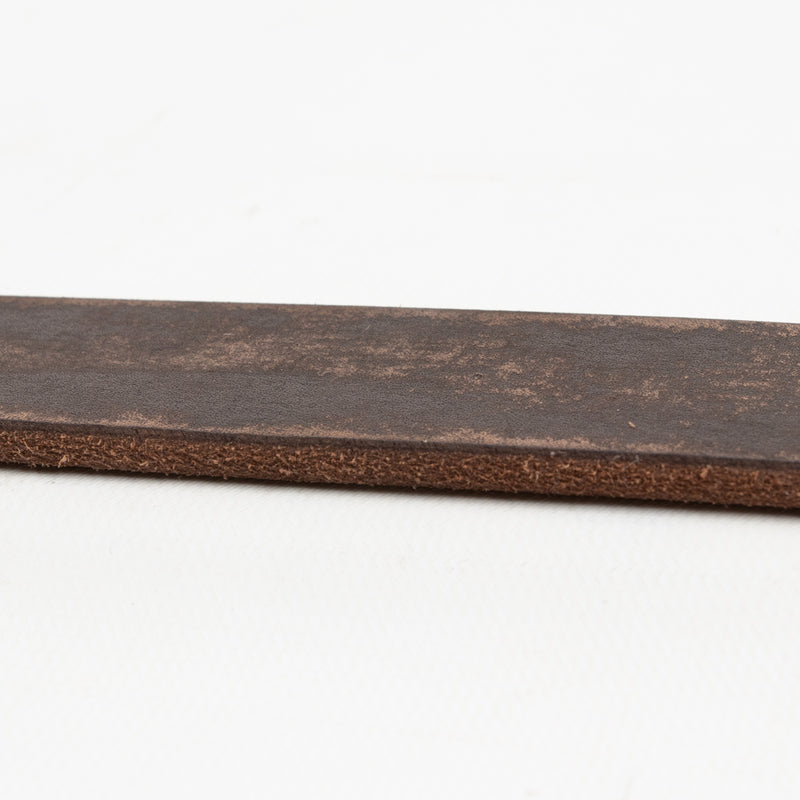 Fullcount's "Wild Leather" belts are no joke - the heavyweight full grain cowhide used to make them is vegetable-tanned, being additionally submerged in organic tanning fluid for a month before being cut into belts.