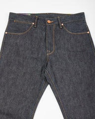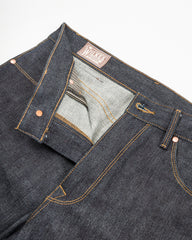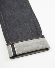 They're made from a 13oz, 100% cotton selvedge indigo broken twill denim produced in Japan. Broken twill denim is woven in alternating left and right hand directions, giving it a unique texture and preventing any sort of leg twist for a more predictable patina over time.