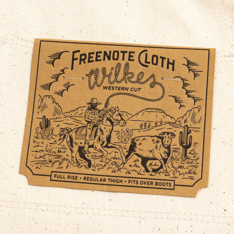 The Wilkes are Freenote's more modern take to a classic cowboy cut jean. With a high rise, comfortable thigh, and very slight taper to a leg opening big enough to fit a pair of boots under, they're an excellent cowboy twist on a classic tapered fit. The double flat felled seams on each leg add strength and longevity to the pants, while still maintaining the selvedge detail on the outseam.