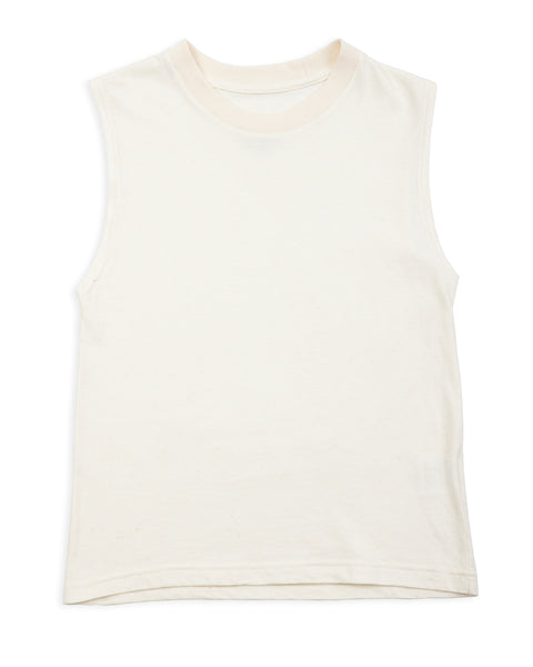 A slightly more femme take on the classic muscle tee, the W'mens Tank takes inspiration from 20th century sleeveless swim tops, which "scandalously" displayed the entire arm. It's got a thick knit collar, wide shoulders, and a flat hem, with a slightly cropped torso for a more breezy fit - and carries the spirit of trailblazing female athletes that were bold enough to bare their entire arms 100 years ago.