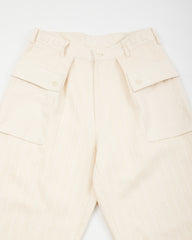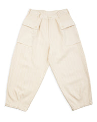 The Maggie Pants are named for Margaret "Maggie" Gee, a physicist and pilot - and one of the only two Chinese-American women to fly as a Women's Airforce Service Pilot (WASP) in WWII. They're a W'Menswear take on the iconic Monkey Pant, featuring a pleated front and an exaggerated taper, but omitting the usual seat pocket for a cleaner silhouette. More suited for civilian life than any battlefield they've got a slightly more shaped and flattering fit that the original US military trousers, as well as a slightly cropped leg.