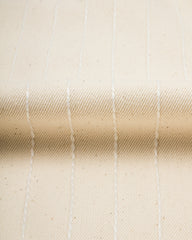 They're made from a hand-loomed, 100% cotton, 3x1 denim fabric with white Kantha topstitching and Khadi fabric trims. Khadi is a traditional Indian cloth made from handspun yarn and then naturally dyed (or left undyed and unbleached). In this case, both the denim body and Khadi trims are completely undyed, and will take in pigments and develop a unique patina over time as you wear these.