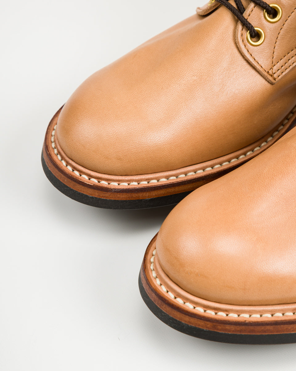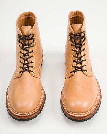 Beyond their selection of exceptional leather jackets, Y'2 also produce their own line of footwear, utilizing the same incredible leathers and skilled craftspeople as their jackets. Wanting to properly represent their unique lineup, we ordered these gorgeous persimmon-dyed horsehide work boots. The leather itself is difficult to produce and sensitive to work with, as this isn't just any natural (undyed) veg-tan leather.