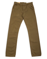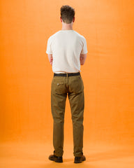 The cut is Freenote's slim-straight chino fit, with a comfortable medium rise, athletic thigh, and a narrow (but not skinny) leg that still fits over boots. Two slash pockets give you a place for your hands, while two welted rear pockets (one with a button and flap, one without) give you a place to put things that aren't hands.