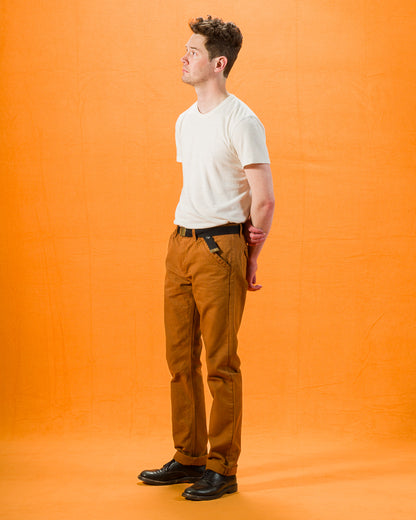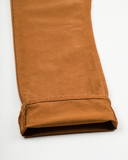 The cut is Freenote's slim-straight chino fit, with a comfortable medium rise, athletic thigh, and a narrow (but not skinny) leg that still fits over boots. Two slash pockets give you a place for your hands, while two welted rear pockets (one with a button and flap, one without) give you a place to put things that aren't hands.