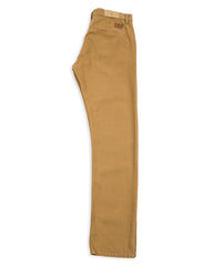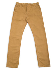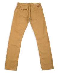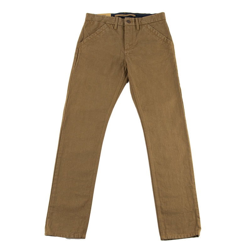 The cut is Freenote's slim-straight chino fit, with a comfortable medium rise, athletic thigh, and a narrow (but not skinny) leg that still fits over boots. Two slash pockets give you a place for your hands, while two welted rear pockets (one with a button and flap, one without) give you a place to put things that aren't hands.
